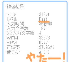 というかなんか食べる気がしなかったり すいてるような気がするけど 食べなくてもなんとかなるような気分になるというか でもおなかは鳴るし かと思ったら急にお菓子とか食べたくなったり (特に夜) なんだこれ?鬱?鬱なのか? 体重もなんか減少傾向なんですけど、 見てくれ、というか、自分的に脂肪が落ちて欲しいところは 変化無いように見えるんですが! これ私の体のどこから何が落ちたの^p^ あ!いちおう誤解の無いように書いておくんですが 強制デトックスって別に自主的に吐いたとかそういうわけではなく、 暖房であったかくなった部屋に 1日くらいおきっぱだったカレーを食べたら腹をこわしたってだけです 大体デトックスって本来意味が違うよね… なんだ最近の私は妙に不穏なことばっかり書いて! テスト消えろ!レポート消えろ! PR 結構前から暇になると地味にやってたタイピングゲームで レベルがファーストになってた! Aより上…だよね…!きっと! 面白いですよこれ(笑)出てくる言葉的な意味で ttp://www.e-typing.ne.jp/typings/meets/komehyo_kokuhaku.htm そういえば、今日は交代でバイト入ったんですが、 その今日本来のバイトのはずだった子、 今日…その…逢引…ゴニョゴニョ…(何故恥らう)のために休んだらしいと、 代われるって言った後に知ってですね…もう、やりきれねえ! も、もう代わってやんないんだから!(爆) しかし特に困ったこともなかったし、生キャラメル食べられたし、バレンタインの差し入れ持ってきた方がいっぱいだったし、確定申告の紙もらえたからまあいっか 今日はあったかかったなあー。春一番効果かしらー 昨日までの寒さが嘘のようだ! ここ数日めっちゃ寒かったから嬉しいような でも暖房が空気読んでくれないから困るといえば困るorz